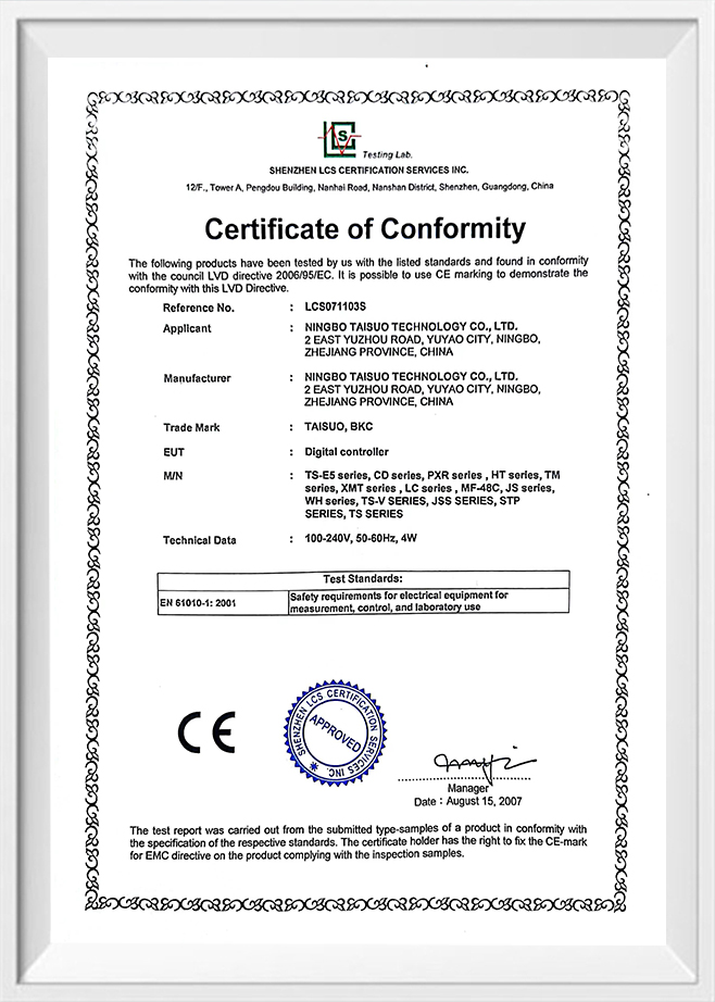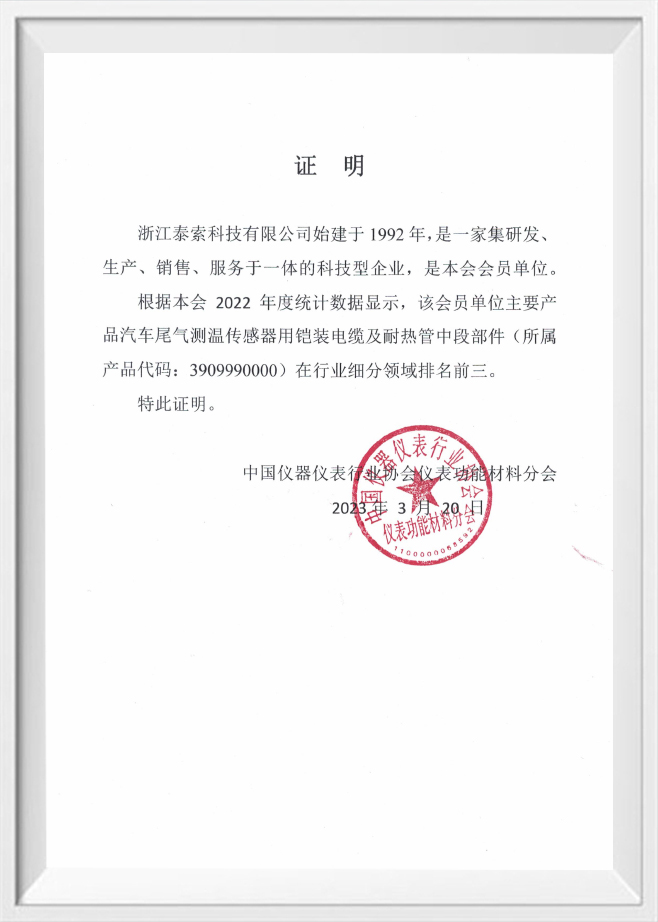 Отраслевая сертификация- Zhejiang TAISUO Technology Co., Ltd